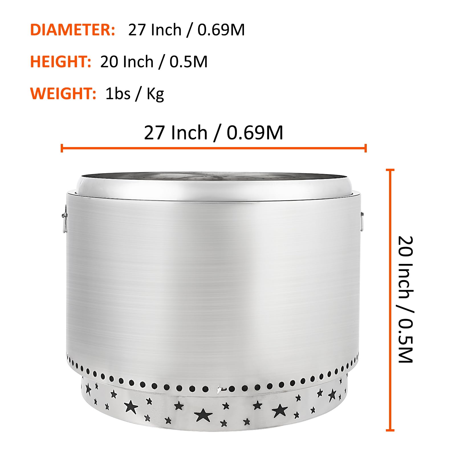 Garvee 27" Smokeless Fire Pit with Air Switch - Portable Stainless Steel Firepit with Handle, Fixed Stand, Stove Hook & Ash Pan for Camping & Patio
