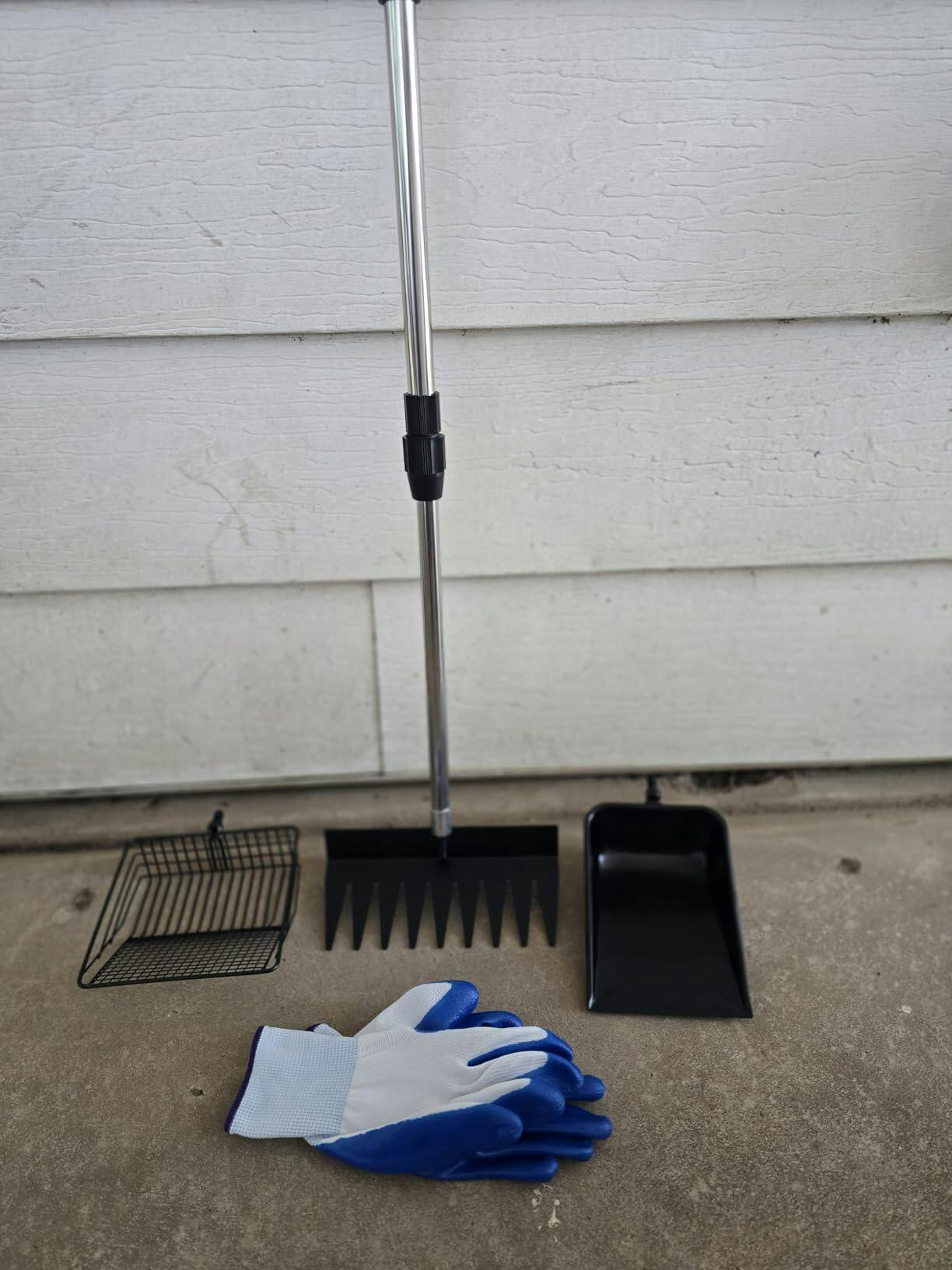 - Easy to Clean, Built to Last: The coated metal rake and scoop, plus the sturdy plastic shovel, are built for regular use and easy cleaning. Simply rinse them off after use to prevent mess and odors, keeping your chicken coop cleaning tools ready for action