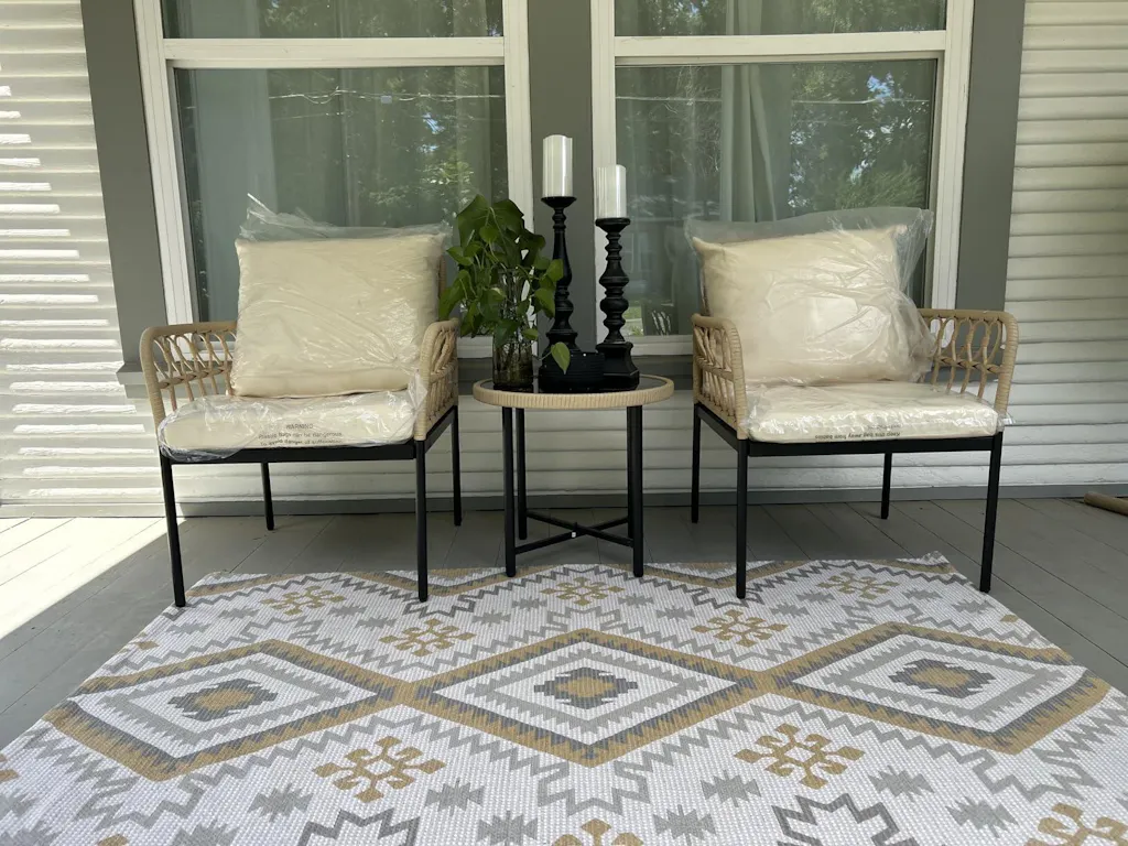 - Versatile Outdoor Use: Ideal for balconies, porches, backyards, or poolside relaxation, this front porch furniture set complements any decor. Its stylish design makes it a versatile addition to your outdoor space, enhancing your enjoyment