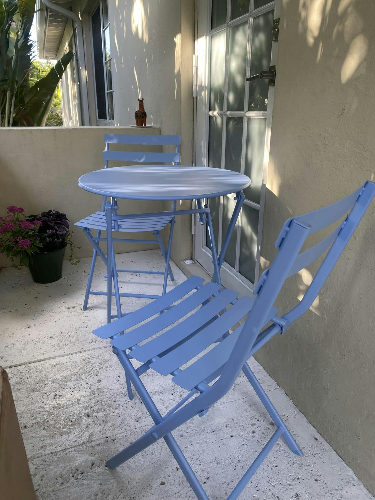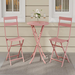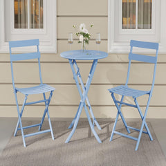 - 🌟【Stylish, Foldable & Functional Chair Features】 Our 3-piece French bistro cafe patio set comes in six vibrant colors: classic black, sunny yellow, vibrant blue, mint green, pink, and white. The two folding chairs feature a durable powder-coated finish for long-lasting rust resistance and are made from sturdy round tube material for enhanced strength and stability. Foldable and space-saving, these chairs easily store away when not in use.