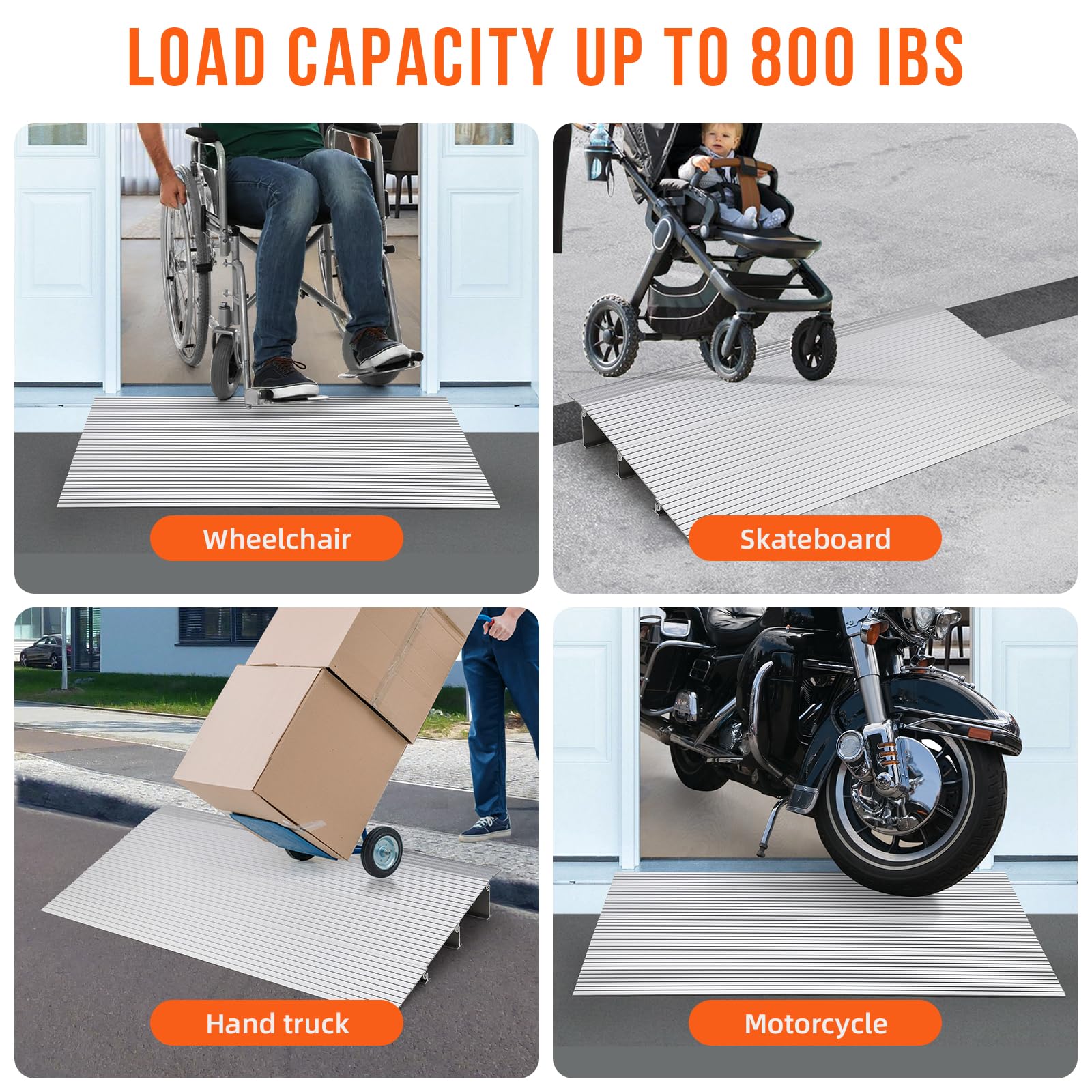 Made from high-quality aluminum, this ramp is rust-proof and scratch-resistant. Its anodized finish ensures durability in any environment, making it perfect for doorways, sheds, and trailers.