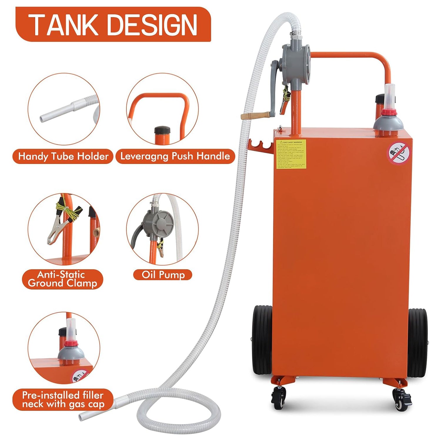 With a robust 30-gallon tank, this fuel container provides ample fuel supply to meet diverse refueling needs, ensuring smooth and continuous operation of gas-powered equipment, whether at home or on the go.