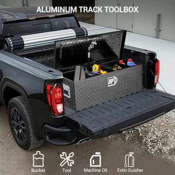 Garvee 30 Inch Aluminum Truck Tool Box, Truck Bed Storage Box with Security Lock and Wider Handles, Heavy Duty Waterproof Tool Box Organizer Chest for Pick Up Truck Rv Trailer - Black