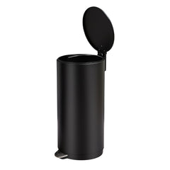 The lidded trash can features a foot pedal for touchless operation, ensuring a hygienic and convenient waste disposal experience in your bathroom or kitchen.