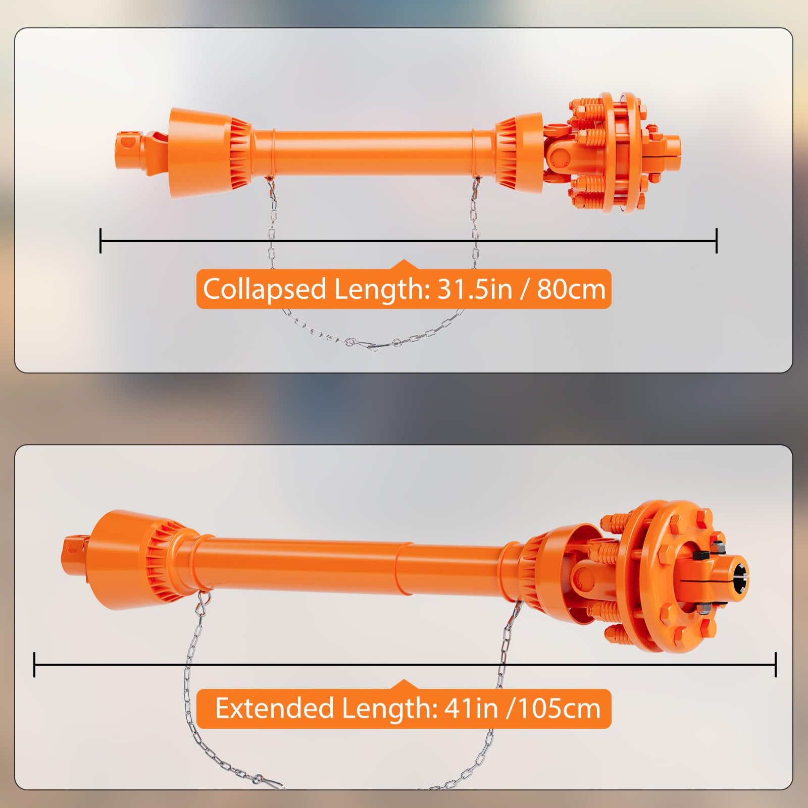 - 【Effortless Assembly and Enhanced Safety】: Our PTO extender shaft can be easily assembled for direct replacement and features a slip clutch for added security to prevent damage. The inclusion of a security chain and plastic shield eliminates potential transmission hazards, ensuring safe operation.