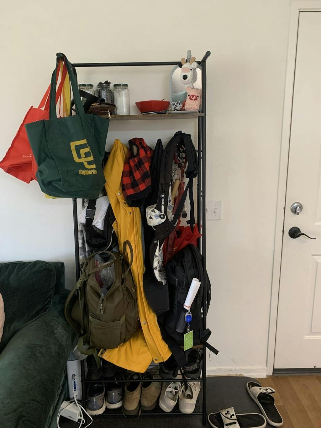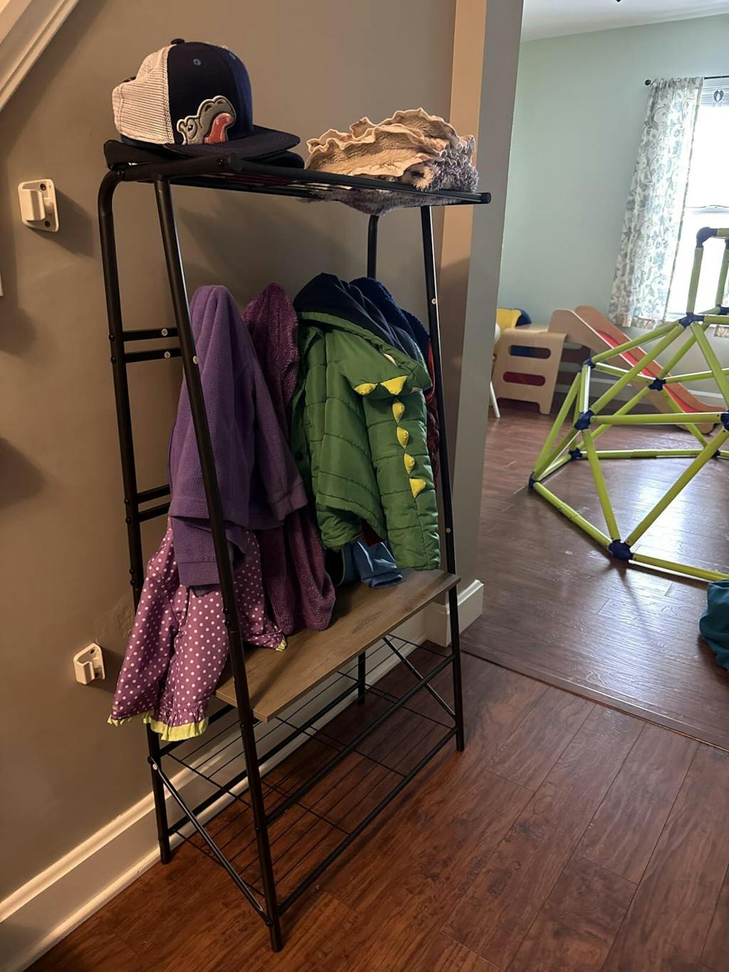 - Top bar for hanging scarves and umbrellas