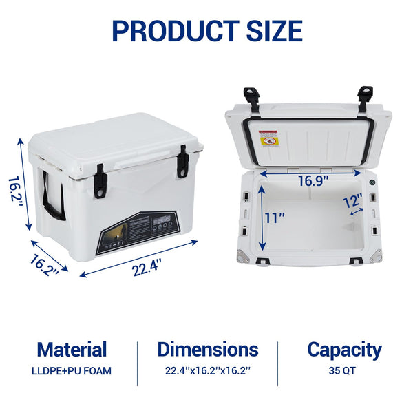 Garvee 35 Qt Portable Ice Cooler – Heavy Duty Ice Chest with Cup Holder, Fish Ruler, Bottle Opener, Easy Drainage, Durable LLPDE & PU, Leak-Proof Design for Camping, Beach, Boat, Fishing, Picnic, Travel