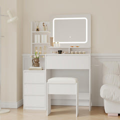 Garvee Vanity Desk, 36-Inch Makeup Vanity Desk, Power Outlet, USB Ports, Stool, 3 Color Adjustable Light, Dressing Table with 4 Drawers, Storage Shelves for Bedroom Women, Black