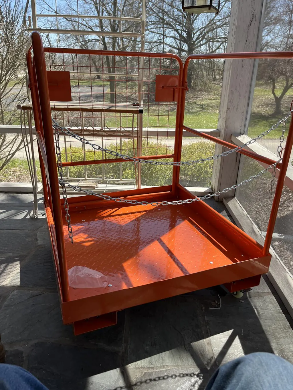 - [Upgraded anti-slip chains]This forklift platform safety cage specifically equipped with anti-slip chains to effectively prevent operators from slipping or losing footing at heights.