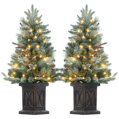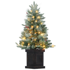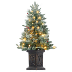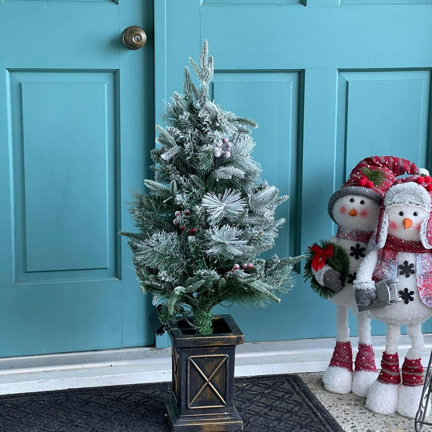 Garvee 3ft Christmas Tree, Pre-Lit Artificial Christmas Tree with Flocked Snow 78 Warm White LED Lights, Red Berries, Festival Decoration Xmas Holiday Decor for Home, Entrances