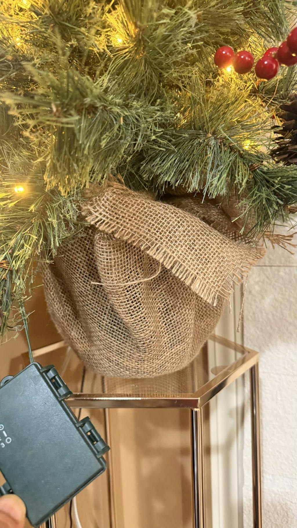 - Decorative burlap base included