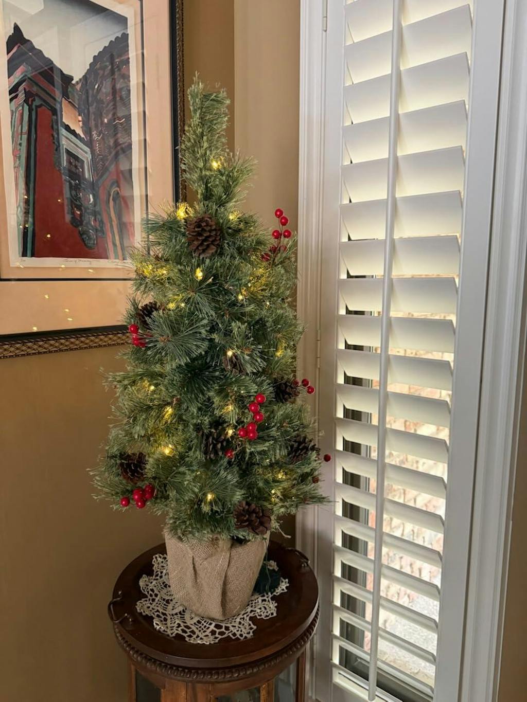 Perfect holiday ambiance with warm white lights and festive decorations