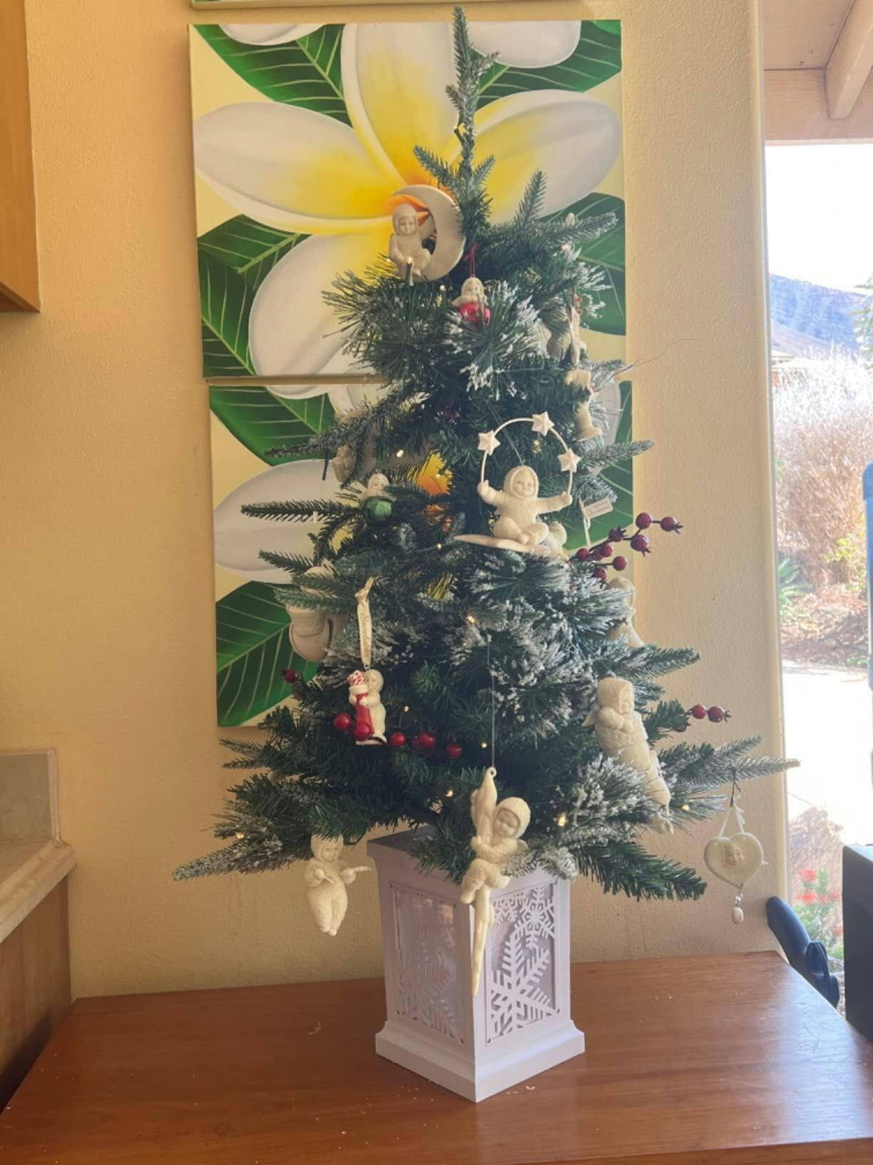We got this tree for our first family tree and we love it. The lights are beautiful and it's nice to have different settings for them, and the rest of the tree looks wonderful (once you adjust the branches from being a little smooshed in the box). The size is perfect for our countertop! The ONLY thing so far that was less than ideal was the amount of "snow" that came off of the tree in getting it out of the box and set up/adjusted, but even that was alright I just discovered it's easier for clean up to unpack and adjust outside. For the price I think it's a great quality. I think this will be in our family for years to come!(Ornaments in second picture NOT included.)