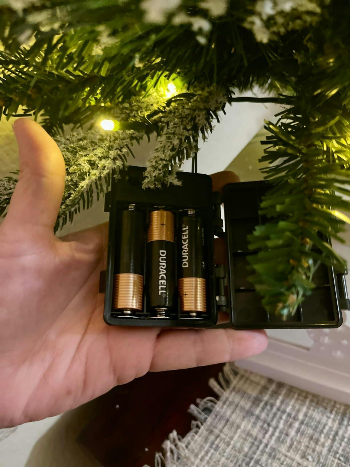 The tree is very beautiful and nice quality. I have a few ornaments on it in the picture. I would 100% buy this again. I wish it was plug in but the time battery setup works really well.