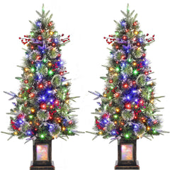 Garvee 4.5ft Christmas Tree with 150 Multicolor Led Lights, Pre-Lit Snow Flocked Christmas Tree with Sturdy Base, Holiday Xmas Tree with Red Berries, Festival Decoration for Home, Entrances
