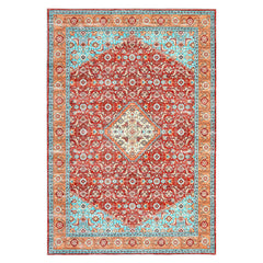 Garvee 4*6ft Persia Style Area Rug Blue-Green,Machine Washable Stain-Resistant Area Rug with Non-Slip Backing Low for Living Room, Bedroom, and Dining Room