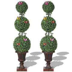 Garvee 4ft Artificial Triple Ball Topiary Trees with Pot, Topiary Trees Artificial Outdoor with Moss, Vine, Insect Decor, All Year Green Outdoor Faux Plants for Front Porch, Home Decor, 2 PCS