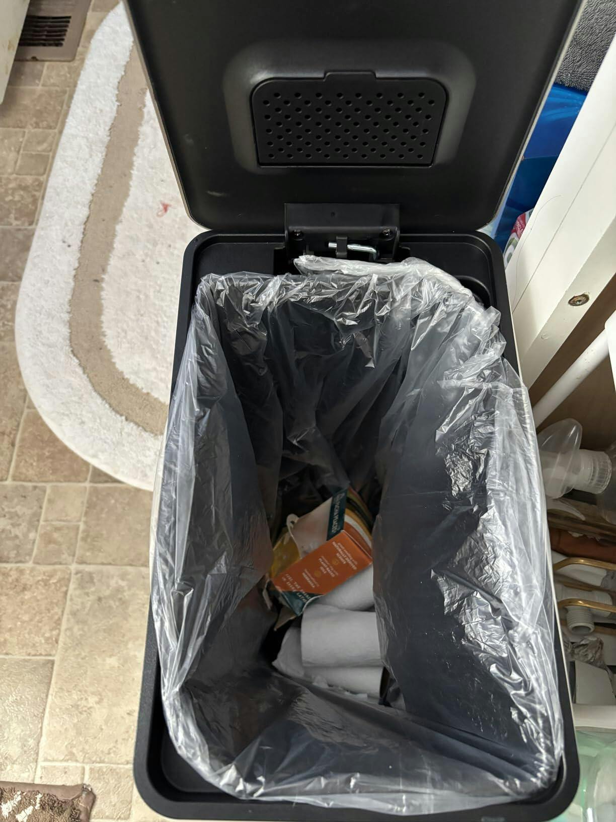 - Silent, Sealed Lid Design: Soft-close, odor-locking lid prevents slams and pests, with a 90° hold-open feature for easy, hygienic disposal.