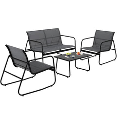 I love this outdoor conversation set! The breathable textilene seating is surprisingly comfy, and the faux wood armrests add a stylish touch. Assembly was simple and the whole patio dining set for 4 feels very high quality. A solid option for small patio spaces.