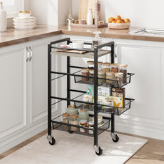 The top shelf features a protective metal fence, ensuring your items stay securely in place even when the cart is in motion.