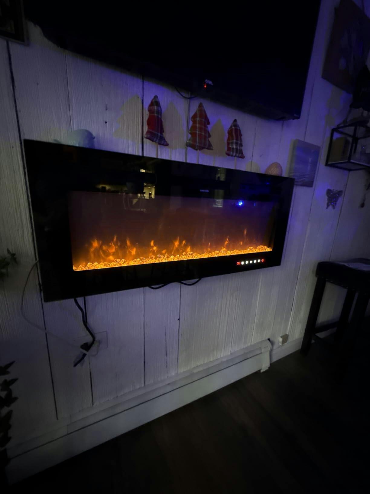 - Timer & Energy-Saving Features – Smart Heating Control:Designed for efficiency, this fireplace electric insert includes a programmable timer and adjustable heat settings. The wall mounted fireplace electric not only reduces energy consumption but also ensures long-lasting use, making it a cost-effective choice for year-round comfort.