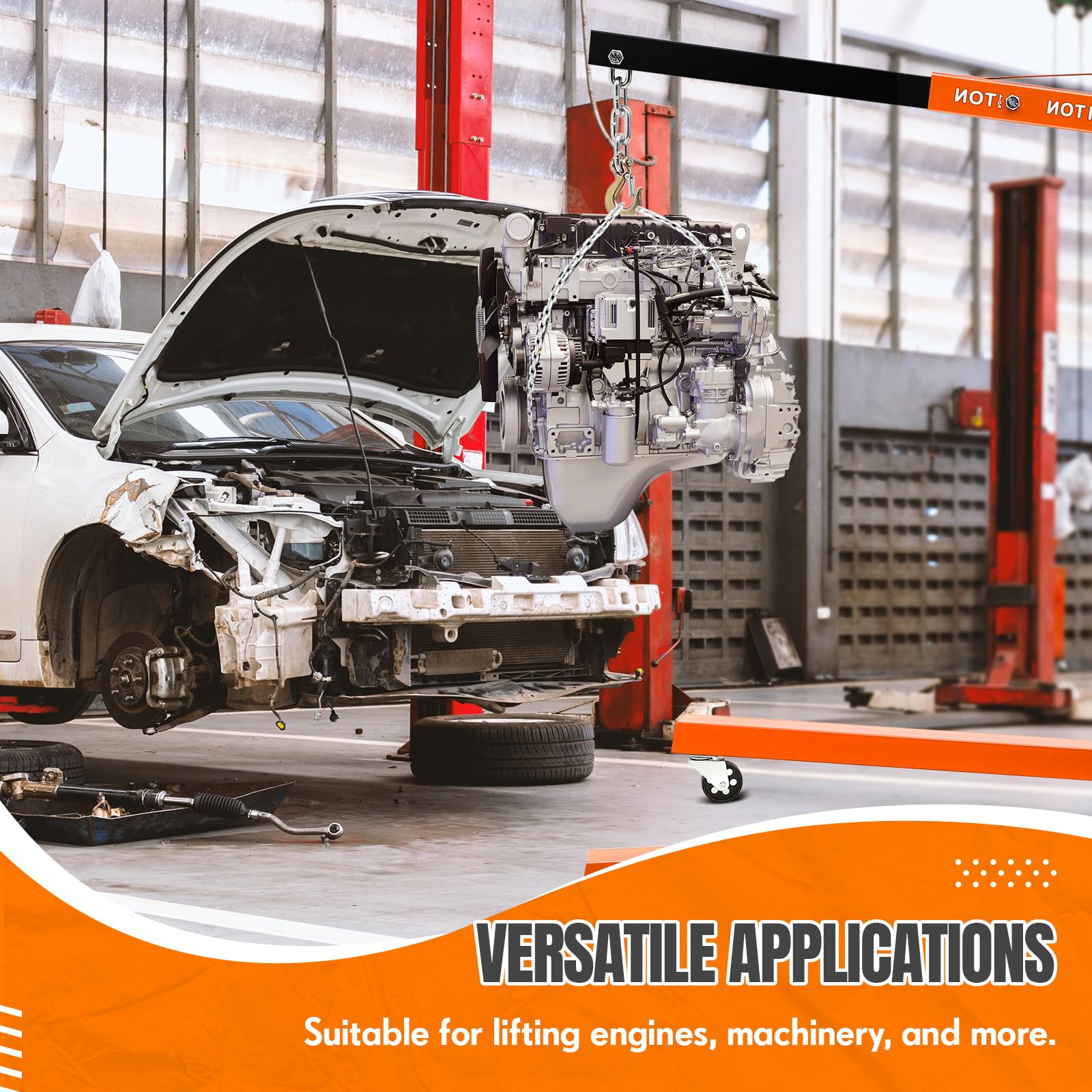 Constructed from robust heavy steel and equipped with an 8 tons hydraulic pump, this engine crane can lift up to 4400lbs. Its durable build ensures reliable performance for heavy-duty lifting tasks in automotive repair.