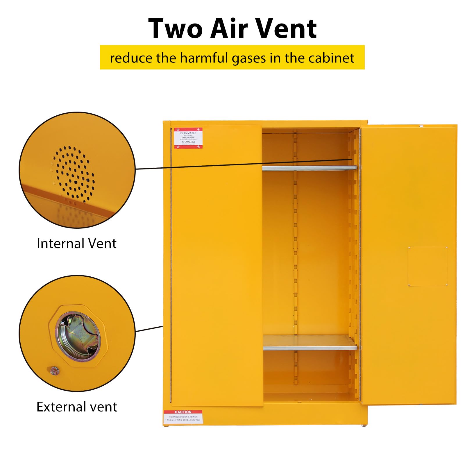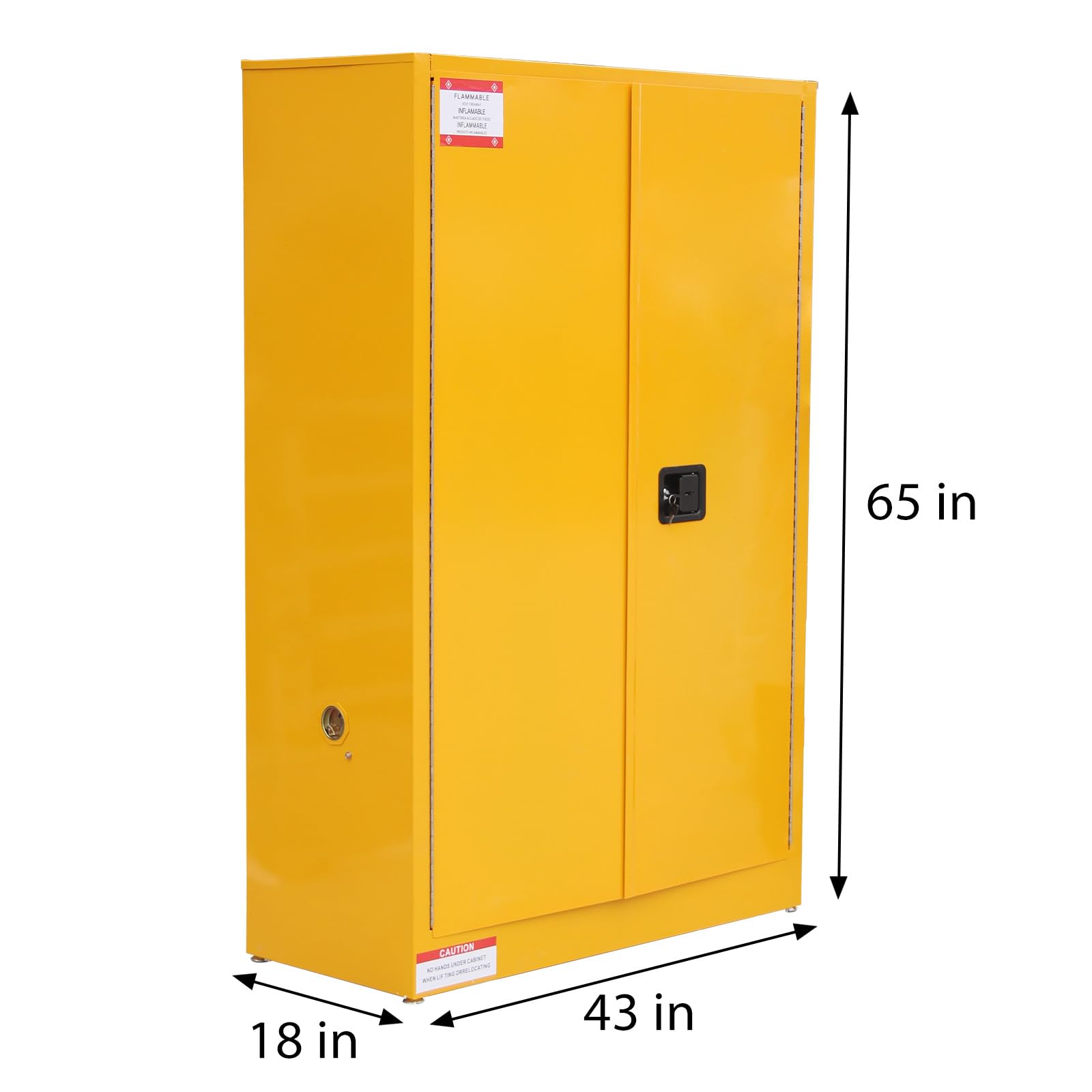 Garvee 45 Gal Flammable Safe Cabinet, 43" x 18" x 65" Galvanized Steel Flammable Liquid Storage Cabinet With 1 Shelf, 2 Manual Closing Doors