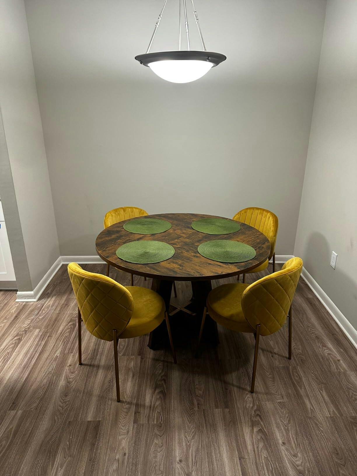 - Spacious Space: This round dining table features a large 47.24-inch tabletop and a height of 29.53 inches, accommodating 4 to 6 people without feeling crowded. Its size ensures a comfortable dining experience, providing ample space for everyone to enjoy their meals.