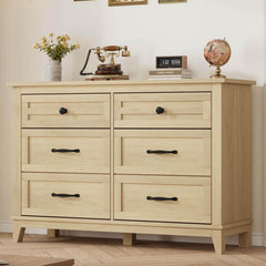 Garvee Wide 6 Drawer Dresser for Bedroom, 47" Farmhouse Wooden Chestwith Storage Freestanding, Wooden Closet Storage Chest for Living Room, Bedroom, Entryway, Natural Oak