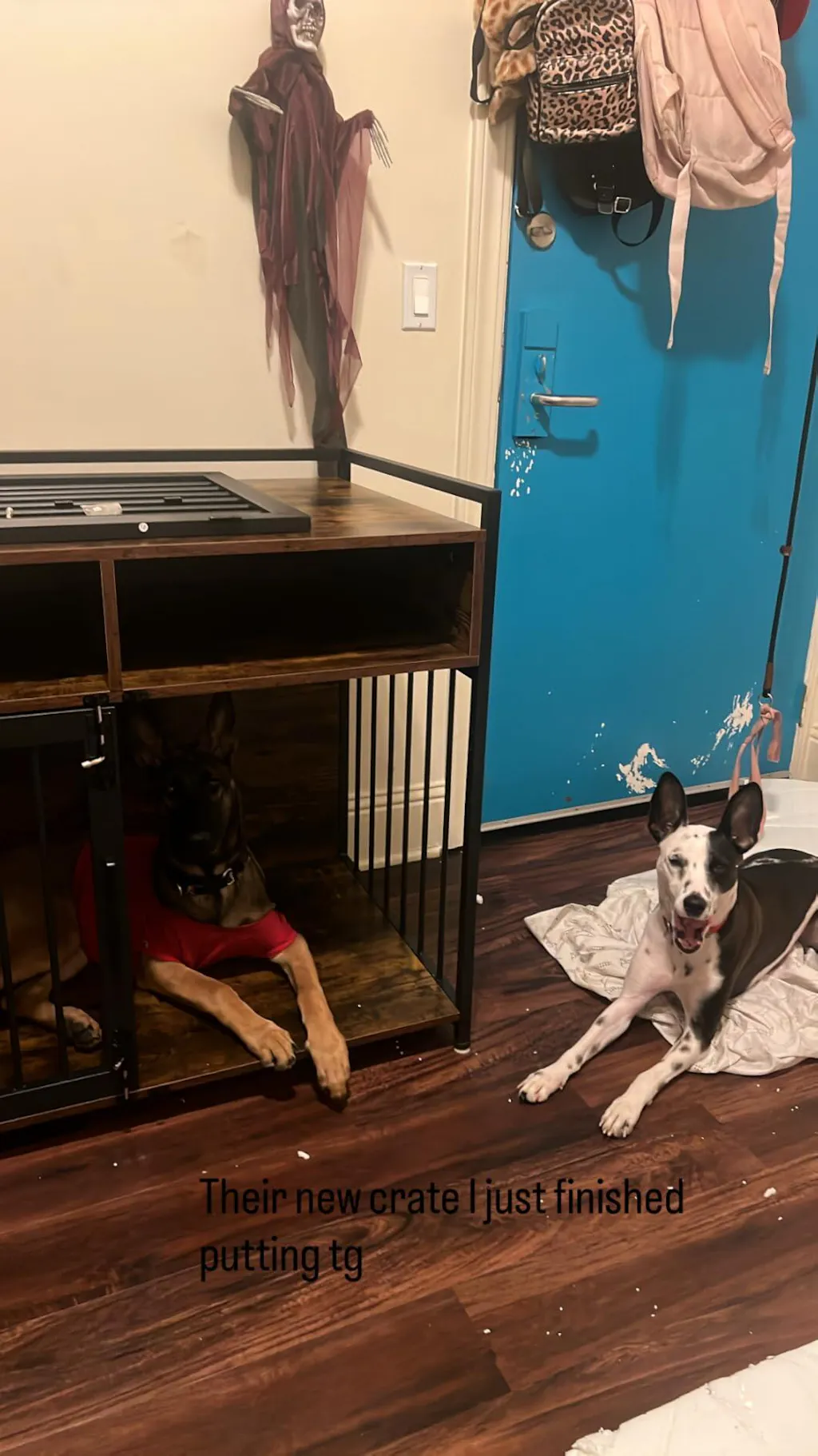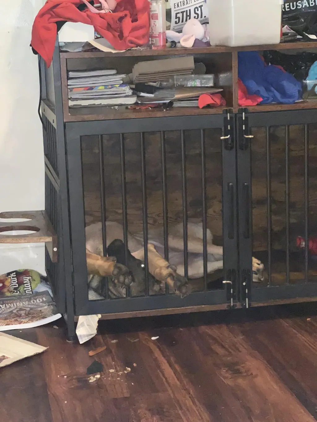 - 【Convenient Double-Door Design】Featuring both a front and a side door, this crate allows easy access for your dog and adapts to various room layouts. The side door can be configured to open left or right, offering flexibility to suit your space and your pet’s habits.