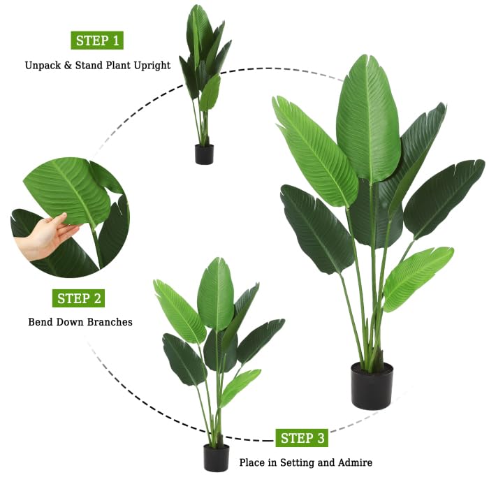 Garvee 4Feet Artificial Bird of Paradise Plant, Tropical Palm Tree with 7 Trunks in Pot, Adjustable Flame-Retardant Faux Banana Leaf for Home Office Decor