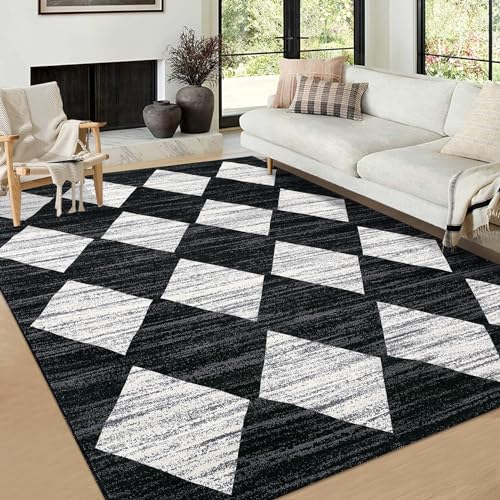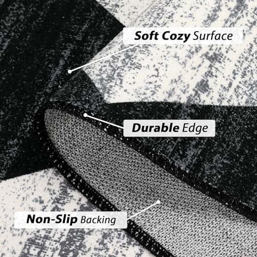 - 【Unique Checkered Rug】- This modern washable area rug is stylish and versatile. Abstract geometry design beautifully enhances any room of the home and gives a sense of modern, making a fashionable and simple appearance to your home.Enjoy a timeless abstract style with our Washable Rug. The chic geometric rug is perfect for any room from entryways to basements. Ideal for those looking rugs for living room or bedroom