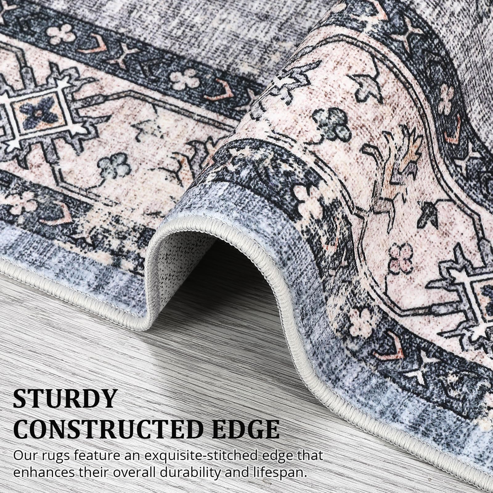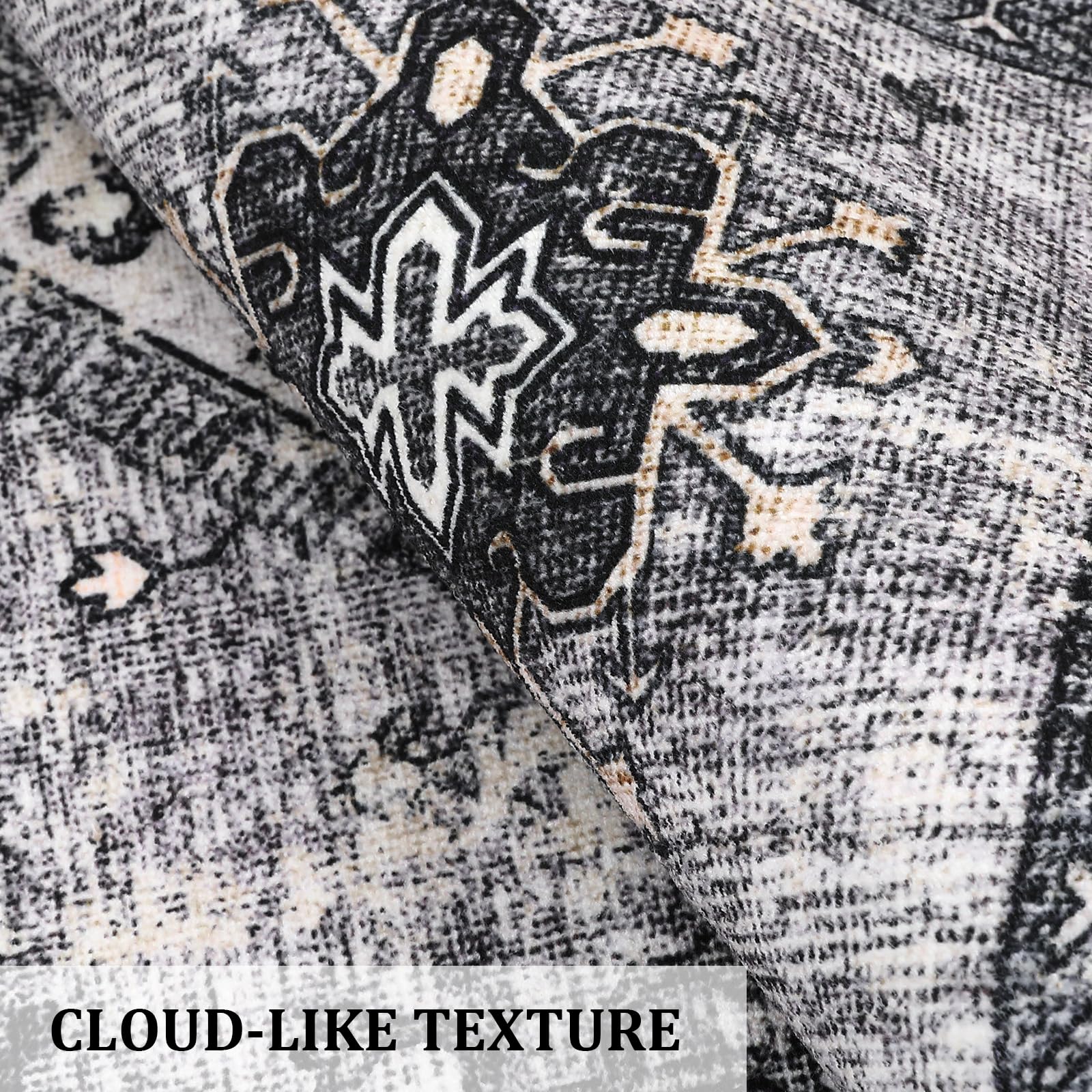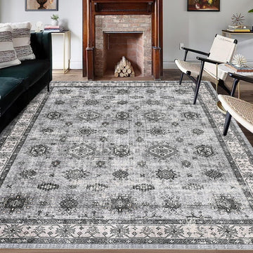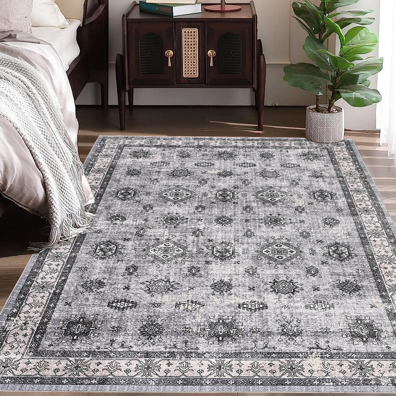 Garvee 5 * 7ft Vintage Area Rug - Washable Stain Resistant, Traditional Distressed Mat, Retro Floral Print, Non-Slip, Foldable Thin Carpet for Living Room, Dining Room, Office.Gray Tone