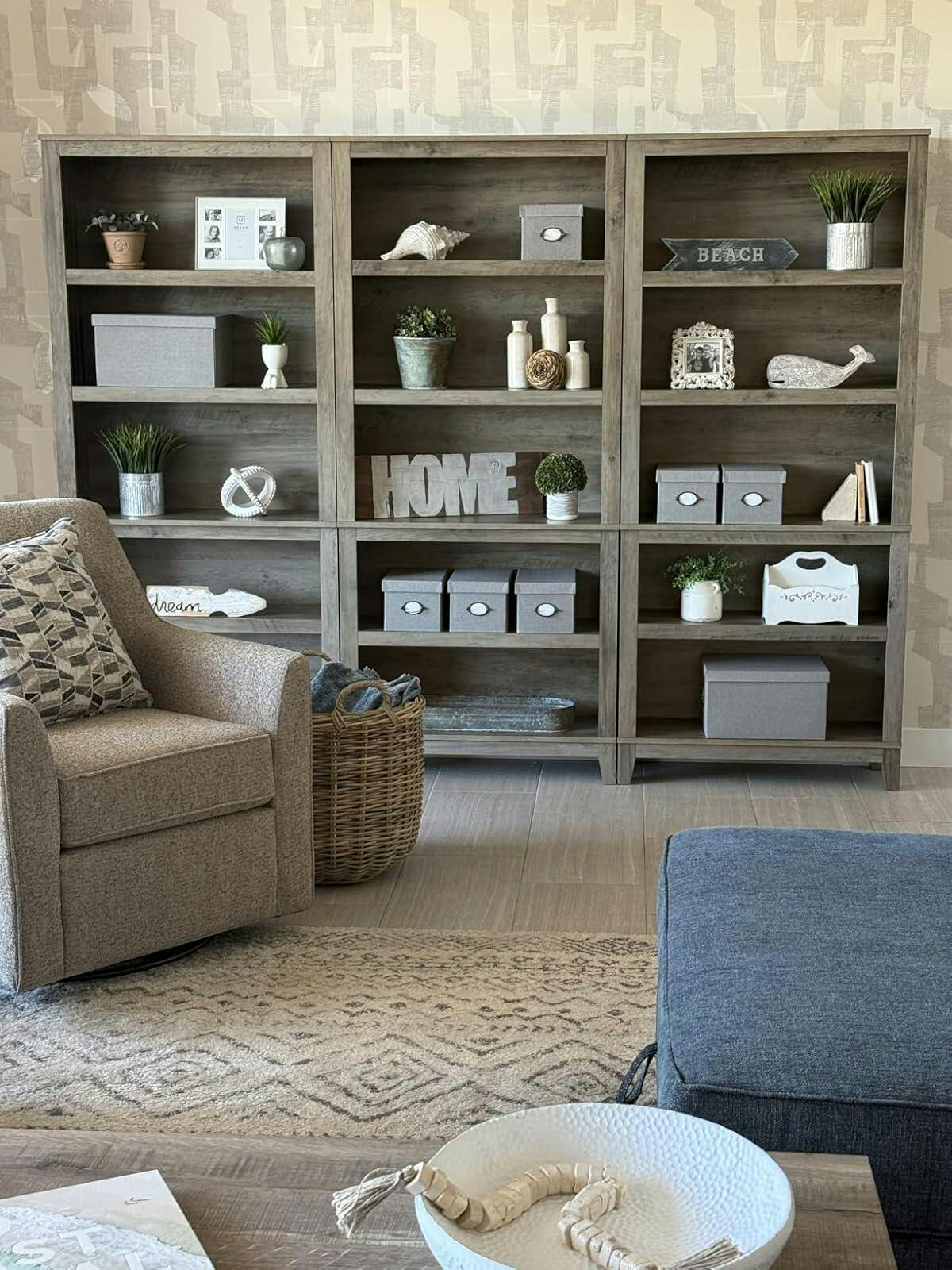 Customize spacing to fit books, decor and storage needs.