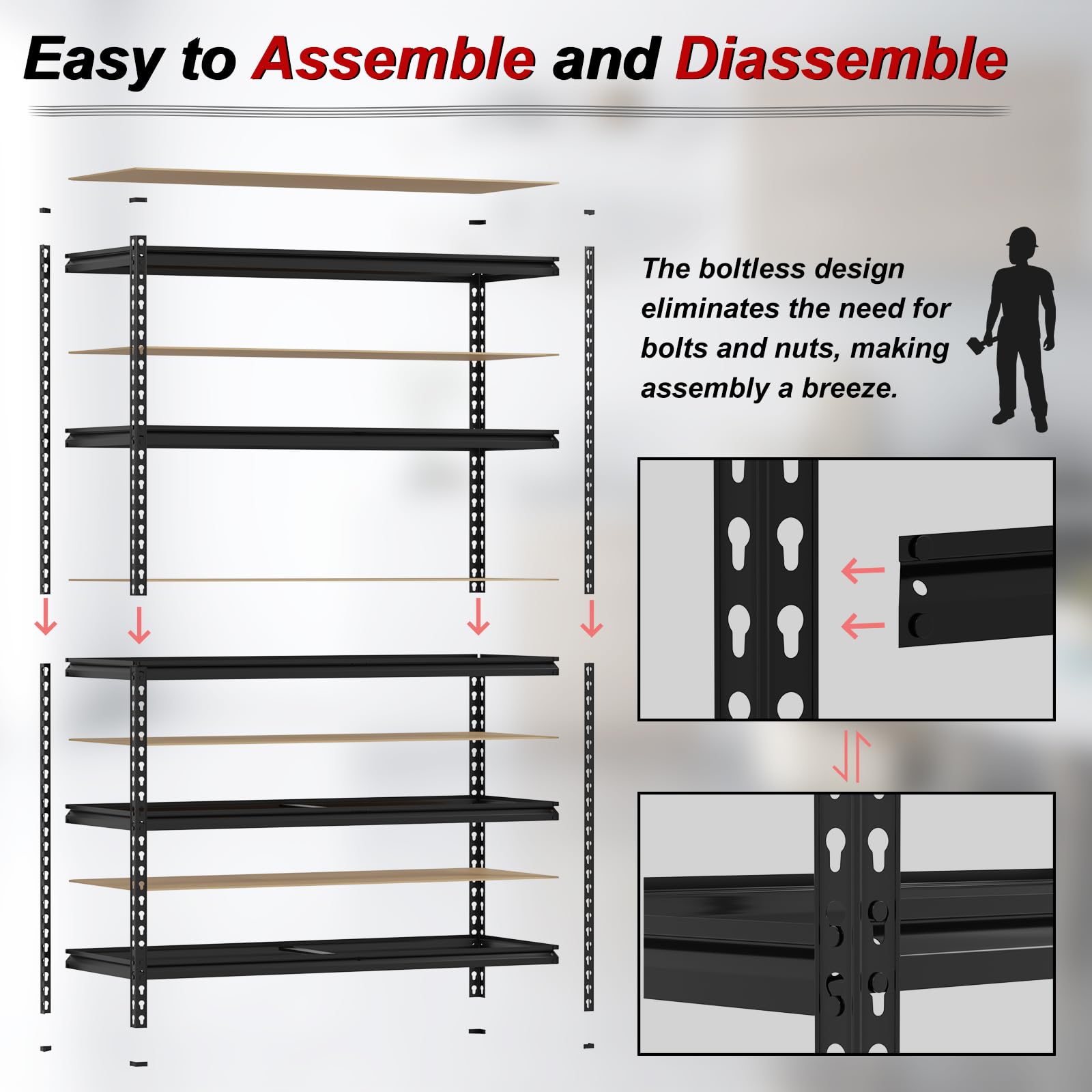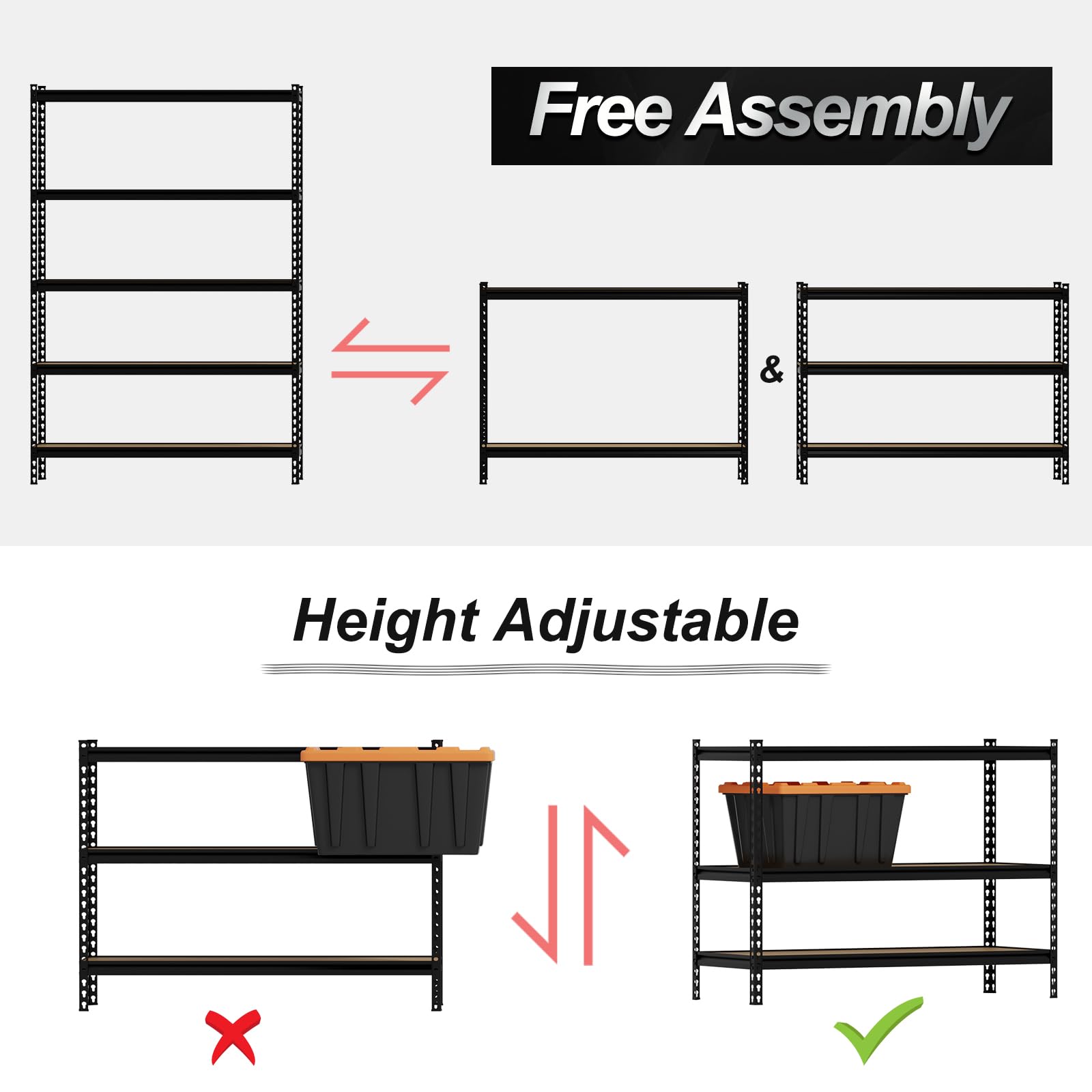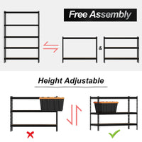 Garvee 5-Tier Storage Shelves, Heavy Duty Metal Shelving Unit, Adjustable Garage Storage Shelving Utility Rack for Warehouse Pantry Kitchen Basement Laundry, Black, 48" L x 18" W x 73" H
