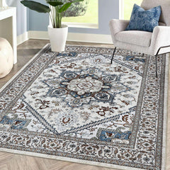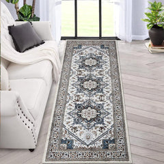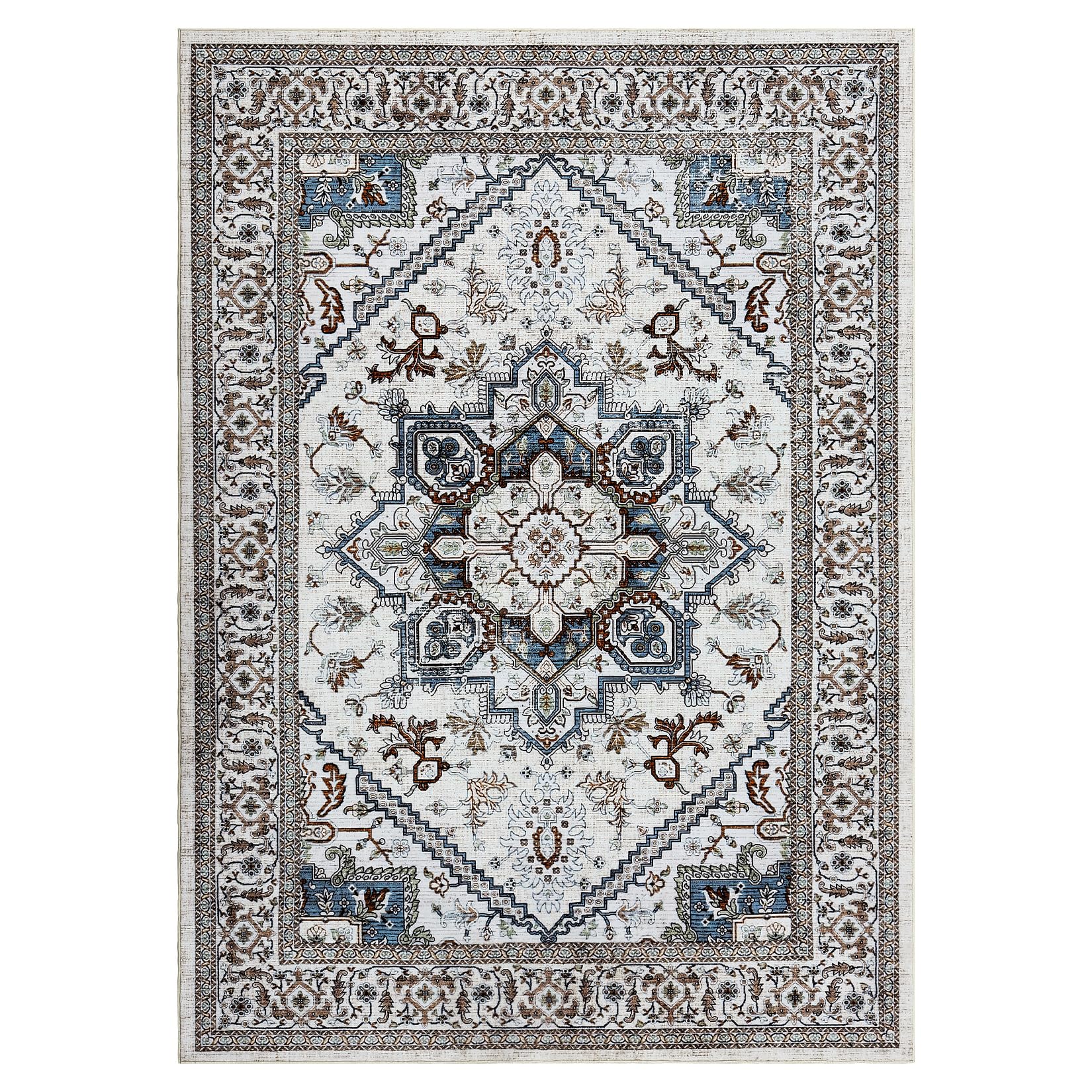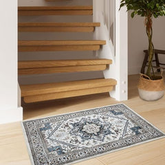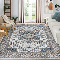 Garvee Vintage Washable Bohemian Floral Rug 5x7 - Grey, Low-Pile, Non-Slip, Indoor Use, Flannel Fibers, Rubber Backing, Ideal for Living Room, Bedroom, Farmhouse