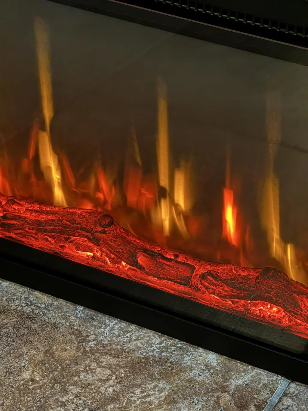 Ideal Clearance: Maintain at least 8 inches of distance from the top of the fireplace to your mantel or ceiling for optimal air intake. Ambience Choice: Use the included Crystal stones for a modern sparkle or the Log set for a traditional, cozy cabin feel. Safety: The front glass remains cool-to-the-touch, making it safe for households with pets and children.