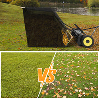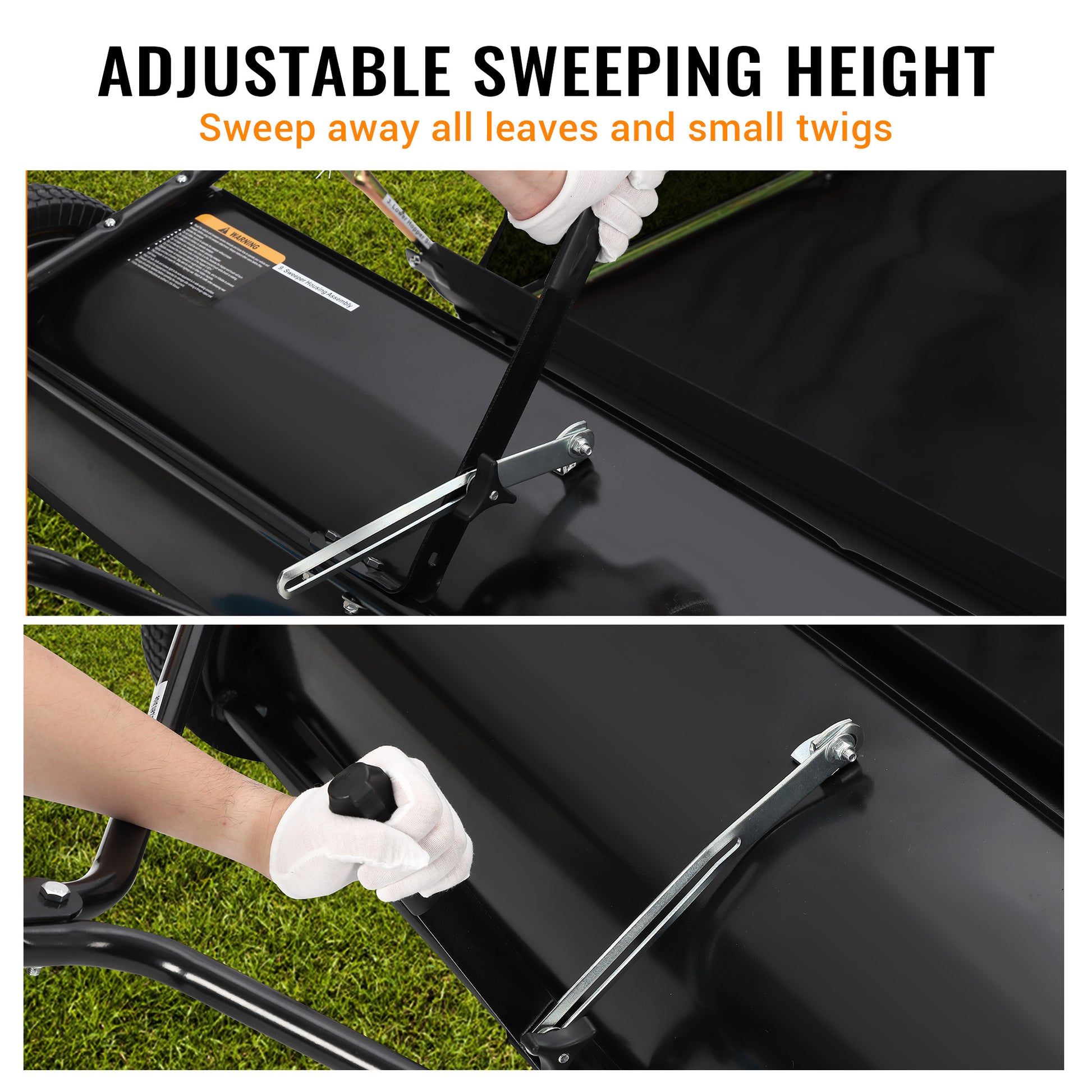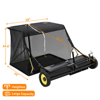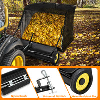 Garvee 50" Tow-Behind Lawn Sweeper - 27 cu.ft. Heavy-Duty Grass & Leaf Collector with Adjustable Height & Dumping Rope Design, Black