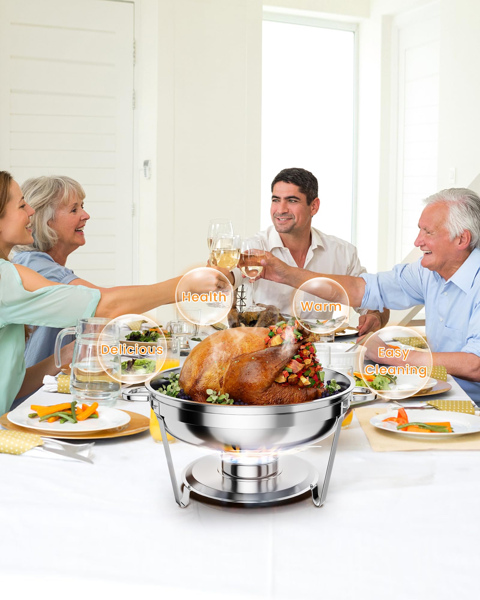 Garvee 5QT Chafing Dish Buffet Set of 4 Pack, Round Stainless Steel Food Warmers Buffet Servers Sets, Chafer with Food & Water Pan, Lid, Frame, Fuel Holder for Catering and Parties