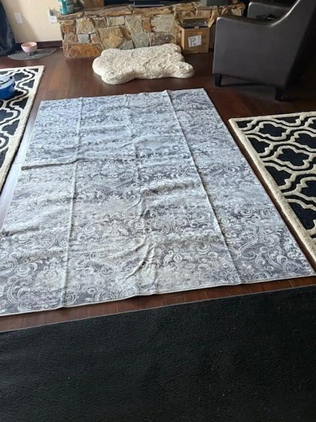 - Remove Rug Creases: Folded for transport, the rug may have temporary creases. To remove them, lay it flat and place heavy objects on the creases, use a steam iron on low with a damp cloth, or roll in the opposite direction. The rug will regain its original shape in a few days.
