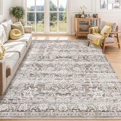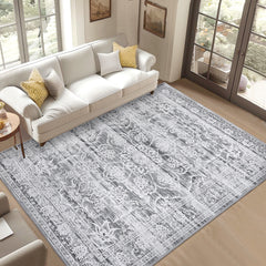 Garvee 5x7 Washable Area Rug Gray Vintage Low Pile Non-Slip Carpet for Living Room Bedroom