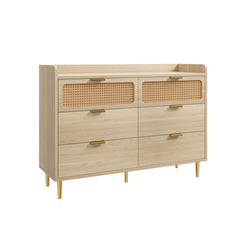 Featuring a blend of wooden grain and refined rattan panels, this dresser is making your home more charming and stylish,easy matching any color tones of you home.