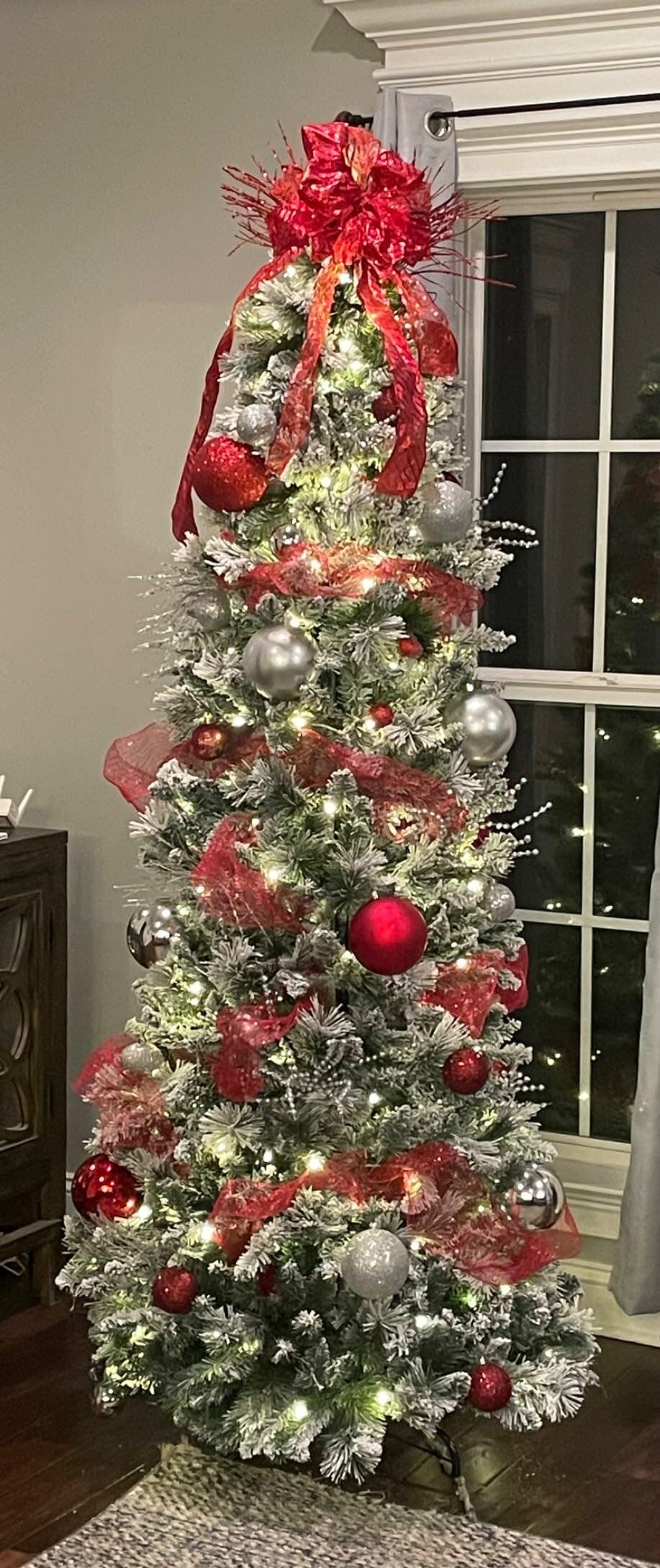 Garvee 6ft Christmas Tree, Pre-Lit Snow Flocked Xmas Tree with Foldable Metal Base, 250 Multicolor LED Lights, 8 Lighting Modes, Artificial Christmas Tree for Home, Holiday Decoration