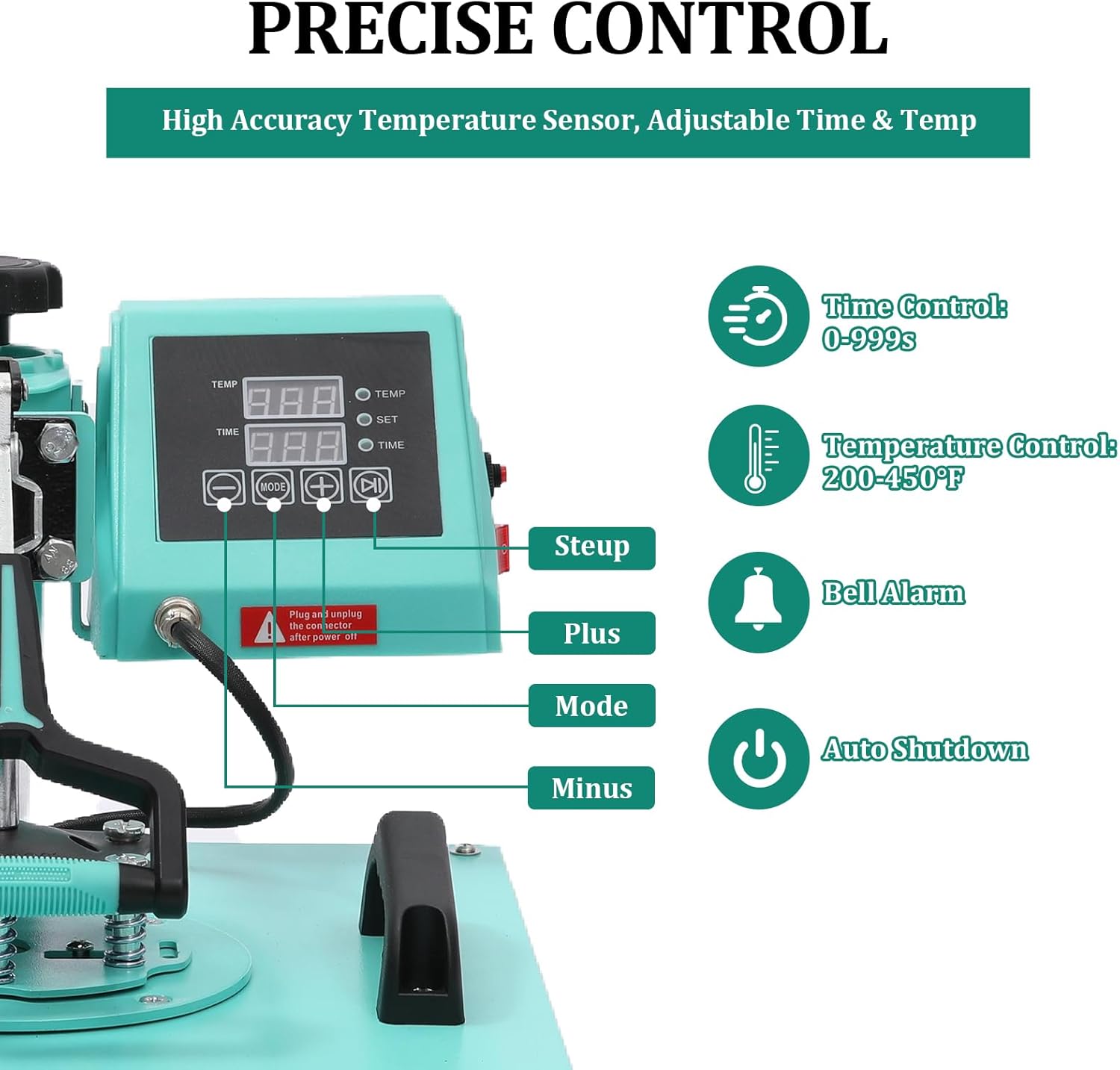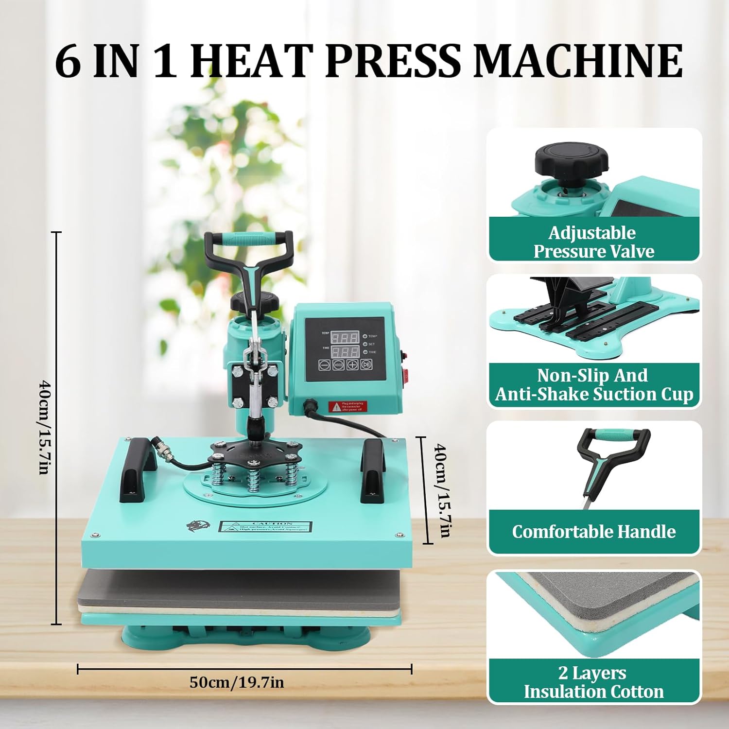 Garvee 6 in 1 Heat Press Machine, 15x15 inch Sublimation Heat Press, 360° Swing Away Digital Heat Transfer Multifunction Heat Transfer Sublimation Combo for T-shirt, Cap, Mug, Plate, Pillow, Bag