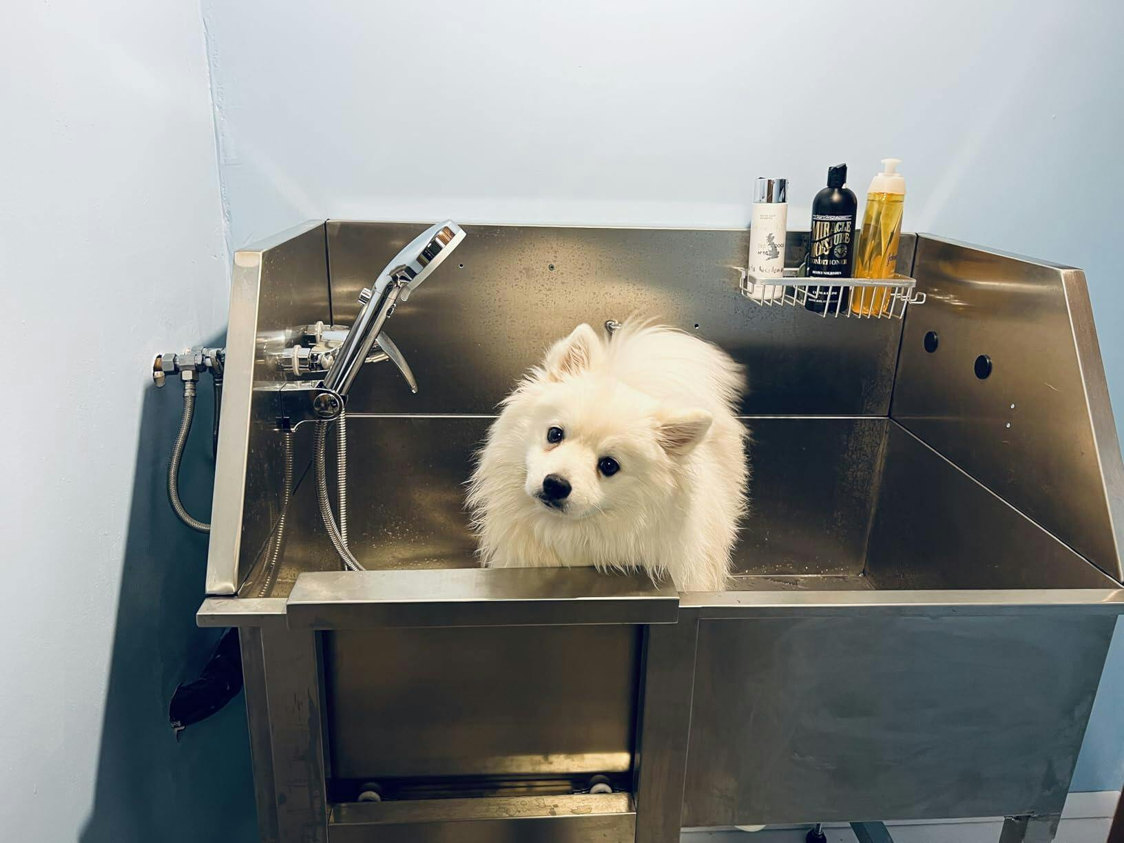 - Convenient Features: Equipped with a right sliding door, right ramp, and a floor grate, this dog bathtub simplifies the bathing process while keeping your pet safe and secure.