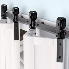 Garvee 60 in Bifold Sliding Barn Door Hardware Track Kit, Side Mounted Black Roller, Smoothly and Quietly, Easy Install, Heavy Duty, Up to 400 LBS, Bifold Door Hardware for 4 Doors (Door Not Included)