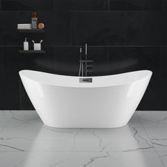 Garvee SZ3 67" Freestanding Bathtub in Streamline Design with Chrome Overflow and Drain, cUPC Certified, White