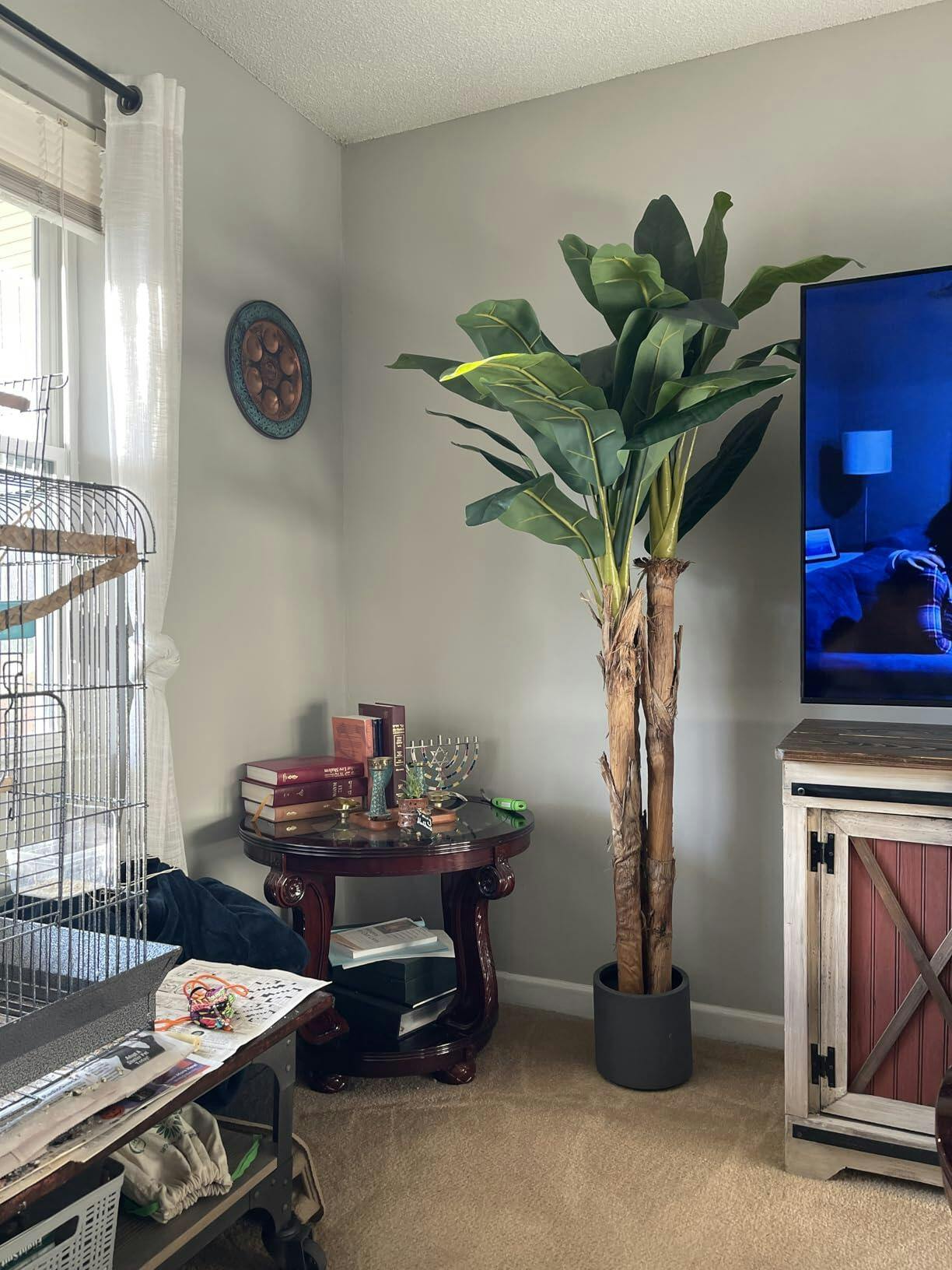 Please note that after adjusting the leaves on the faux banana tree, the overall height may be slightly reduced. This is a normal part of the adjustment process, as the leaves may shift position and take up a bit less vertical space. However, the artificial tree's overall appearance and size will still be very close to the listed dimensions.