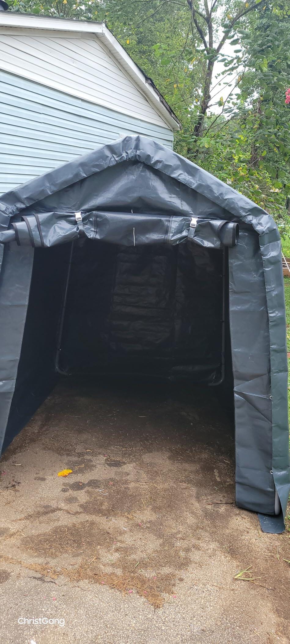 Garvee 6x8FT Outdoor Portable Storage Shed with 2 Roll-Up Doors, Vents, Heavy-Duty 240G Waterproof PE Tarp, UV-Resistant, Galvanized Steel Frame, for Motorcycle & Garden Tools