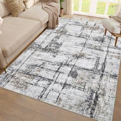 - Abstract Design: Enhance your home decor with this modern abstract area rug, showcasing a stylish distressed pattern in neutral tones. Ideal for contemporary or farmhouse settings, this decorative rug effortlessly elevates the aesthetic of any room